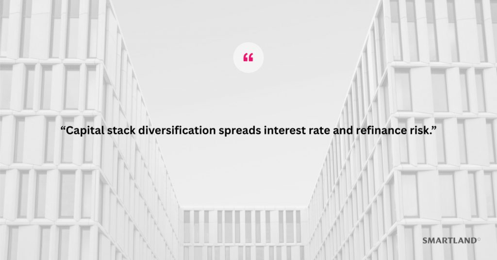 Capital stack diversification spreads interest rate and refinance risk. Balance fixed and floating rates to control volatility. Ladder maturities, so not all loans reset together. Track LTV and DSCR at the deal and portfolio levels. Use preferred equity or mezzanine sparingly.